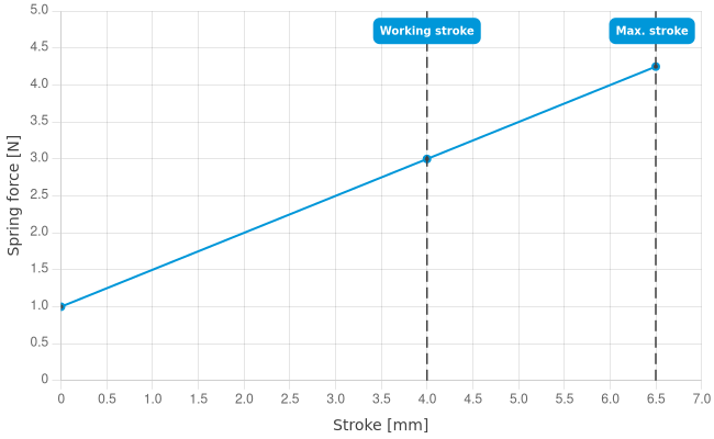 - Spring force at working stroke: 3 N [10.7 ozf]