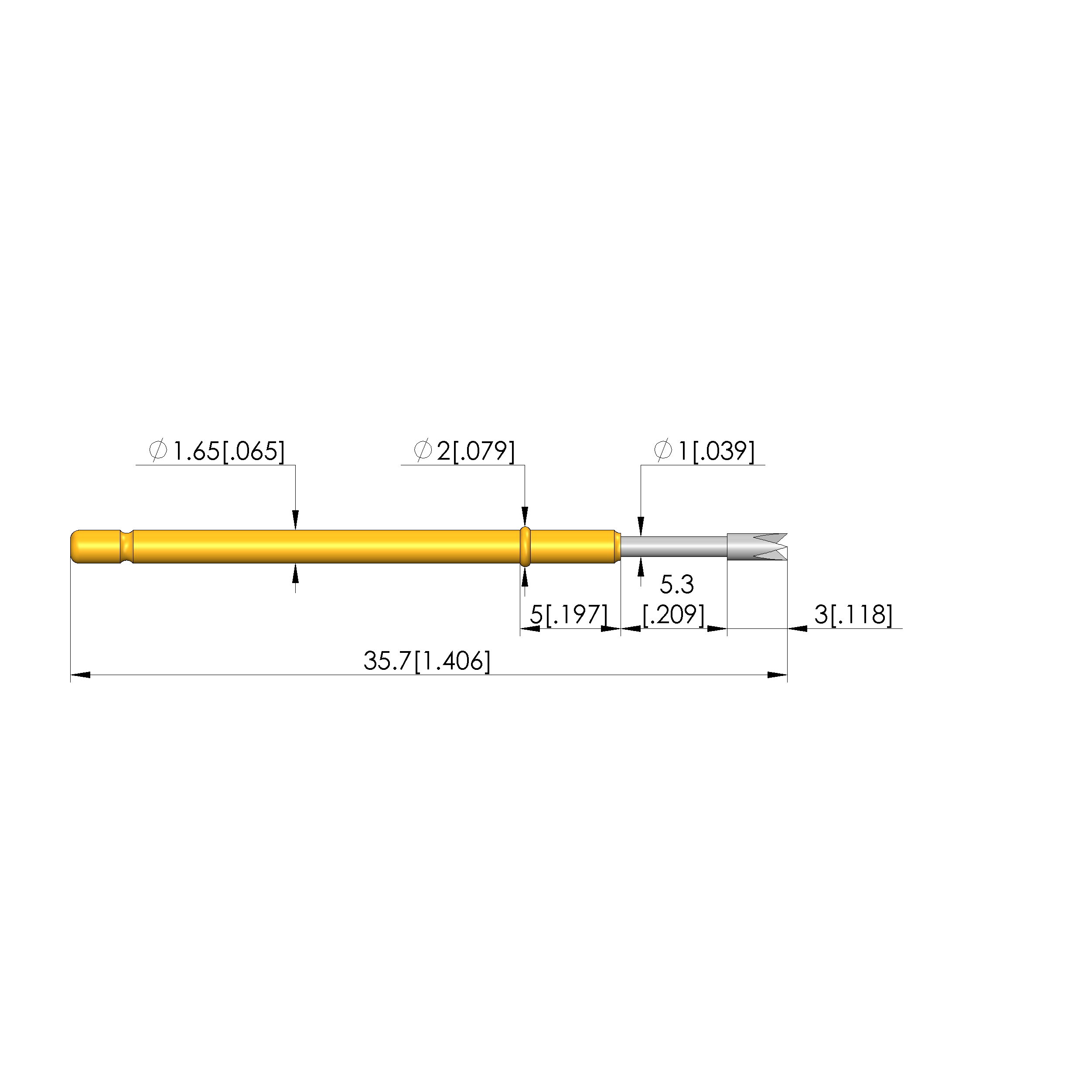 - Barrel diameter: 1.66 mm [.065 in]
