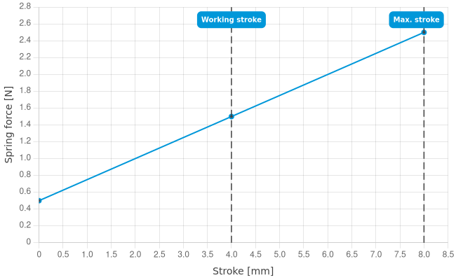 • Spring force at working stroke: 1.5 N [5.39 ozf]