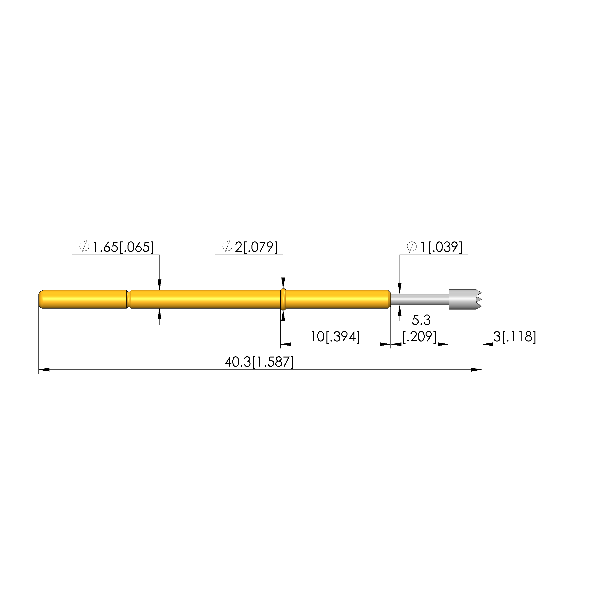 - Barrel diameter: 1.66 mm [.065 in]