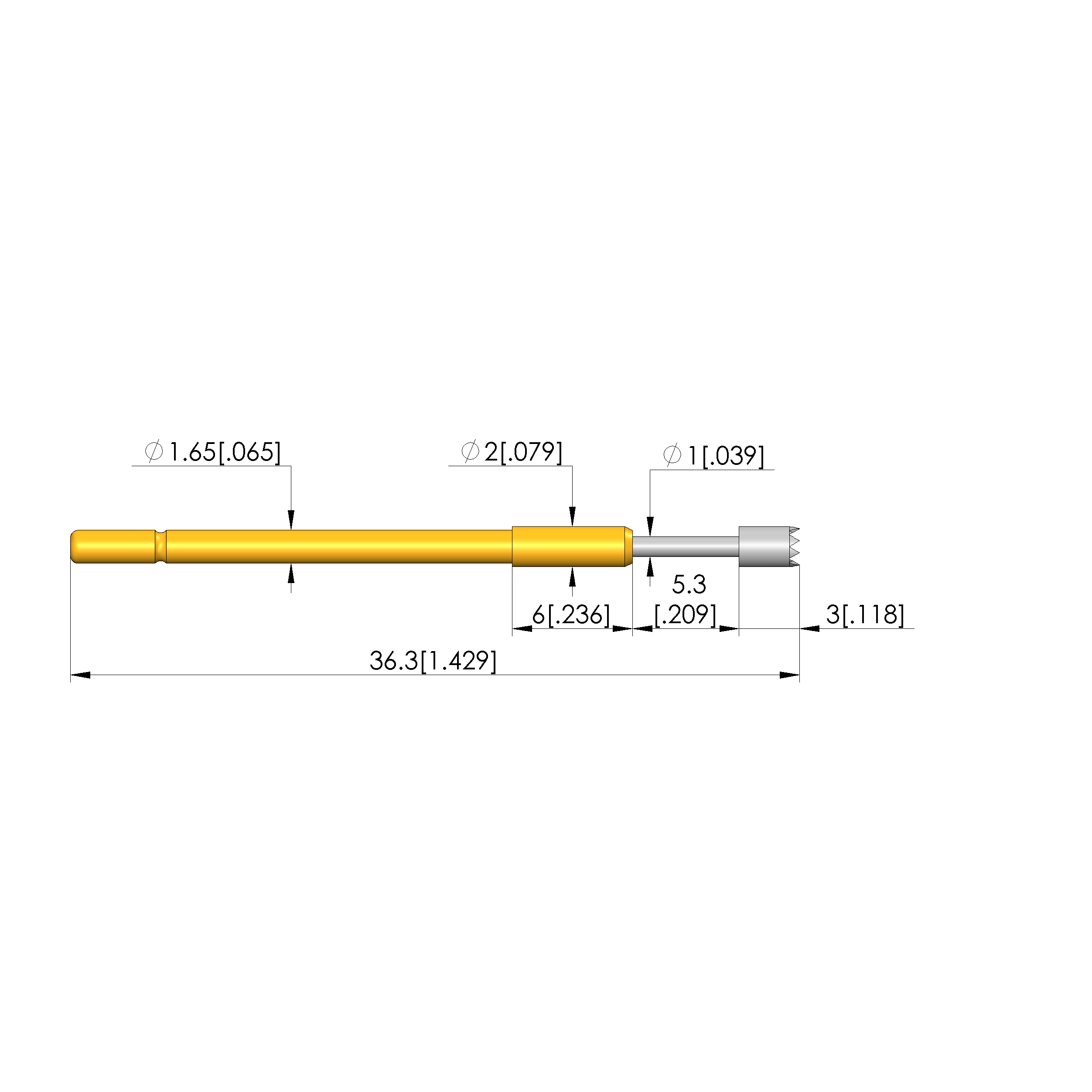 - Barrel diameter: 1.66 mm [.065 in]