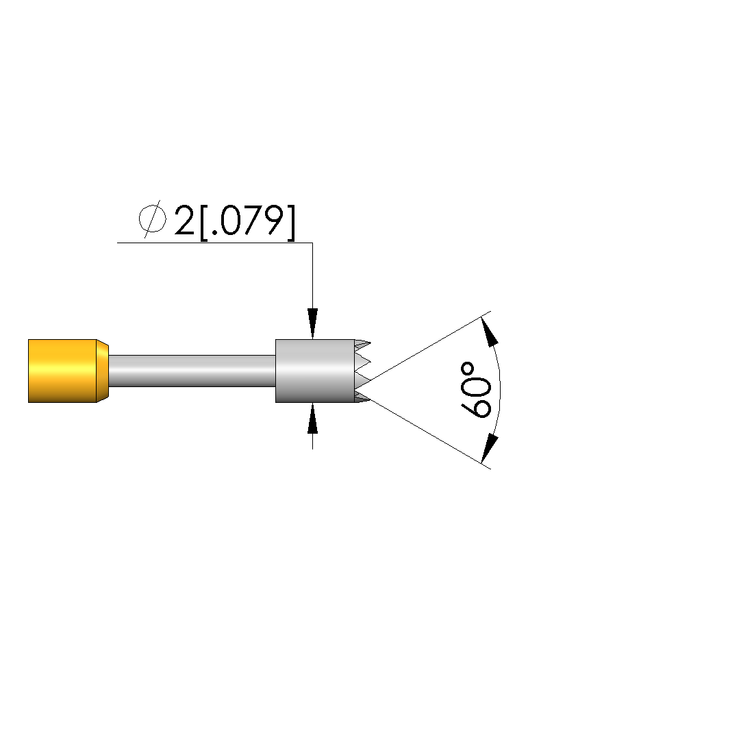 - Tip diameter: 2 mm [.078 in]