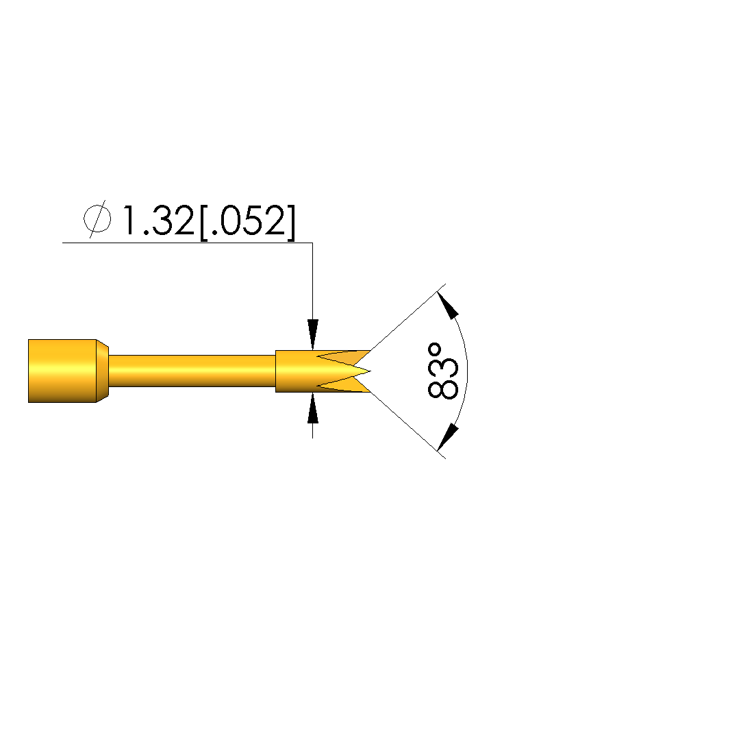 - Tip diameter: 1.3 mm [.051 in]