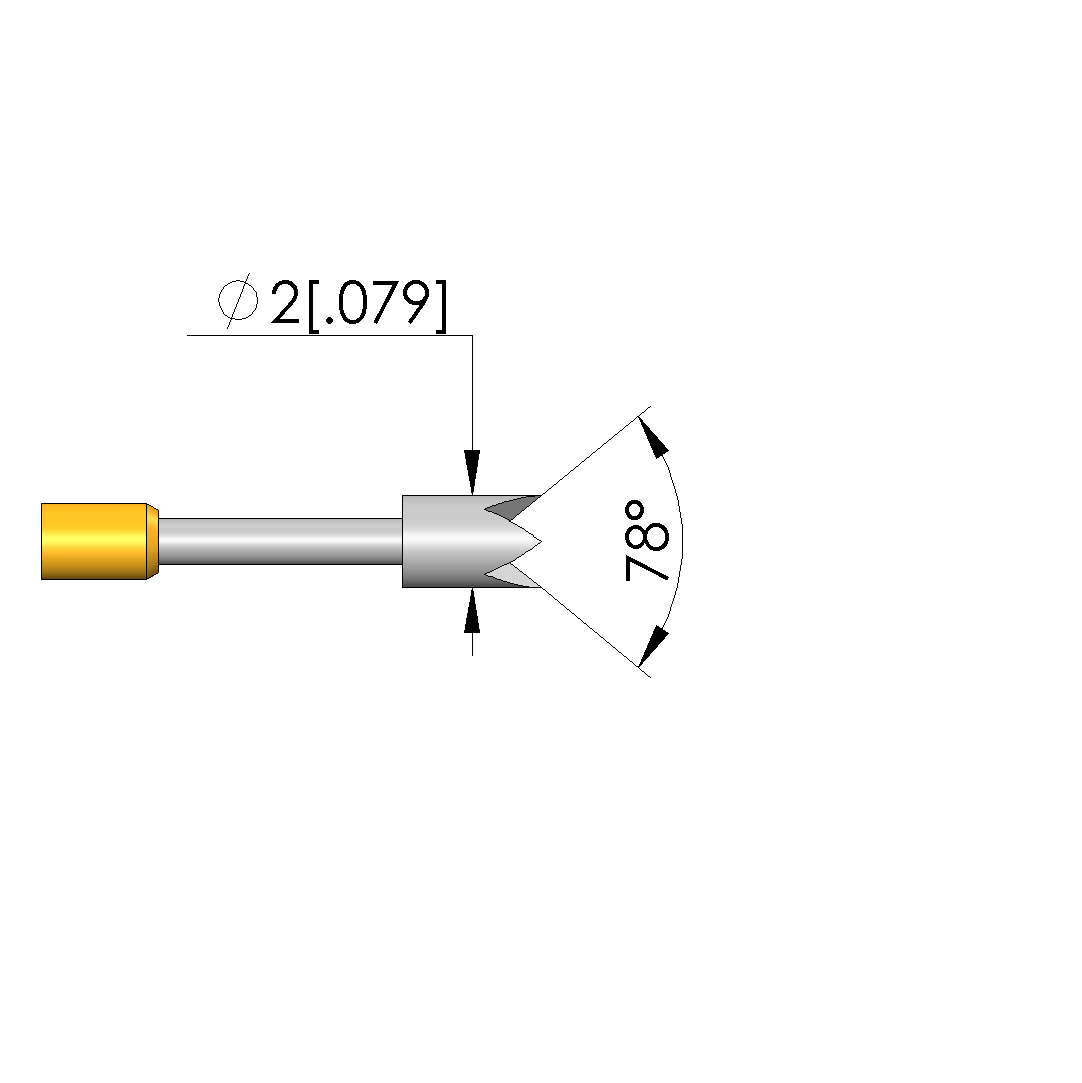 • Tip diameter: 2 mm [.078 in]
