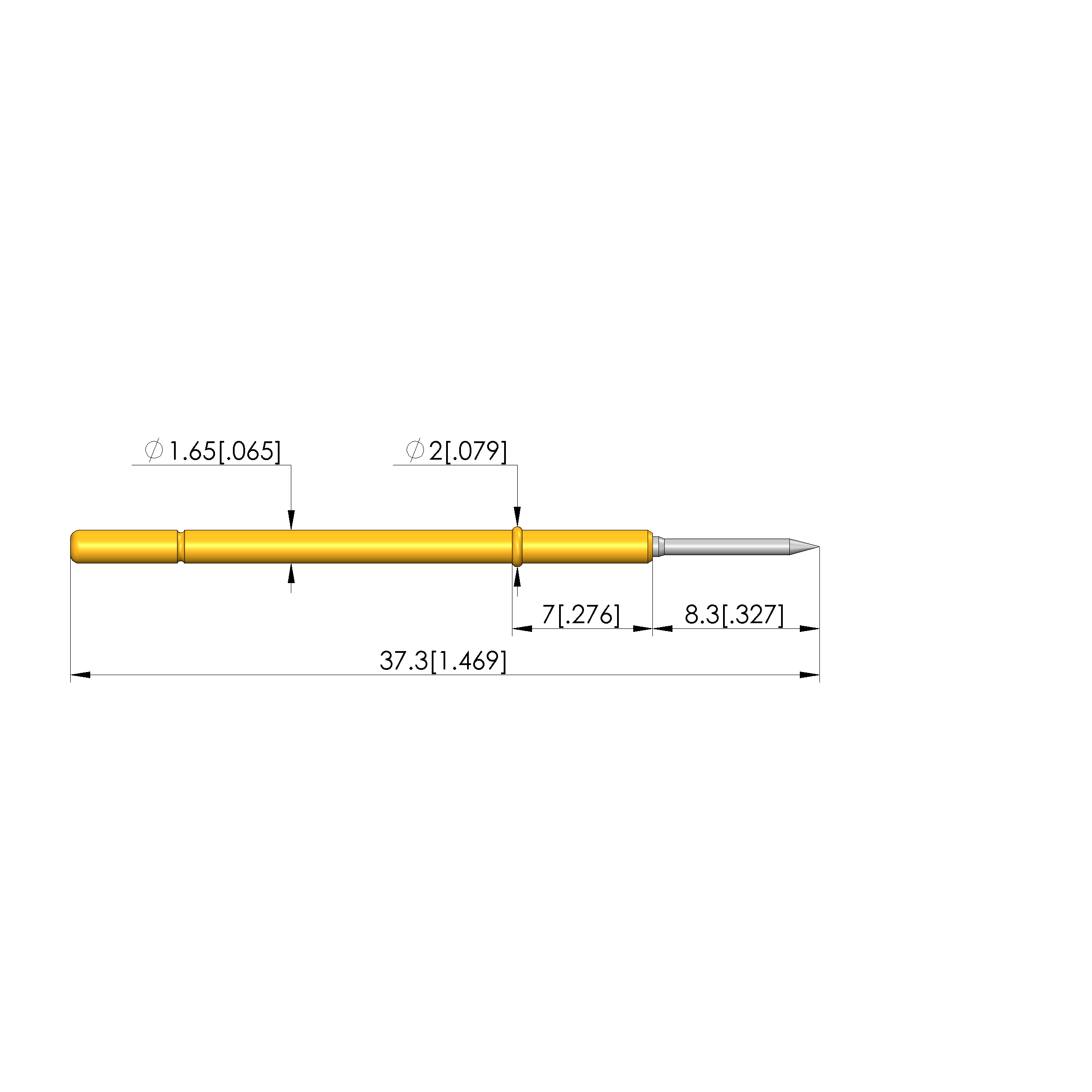 - Barrel diameter: 1.66 mm [.065 in]