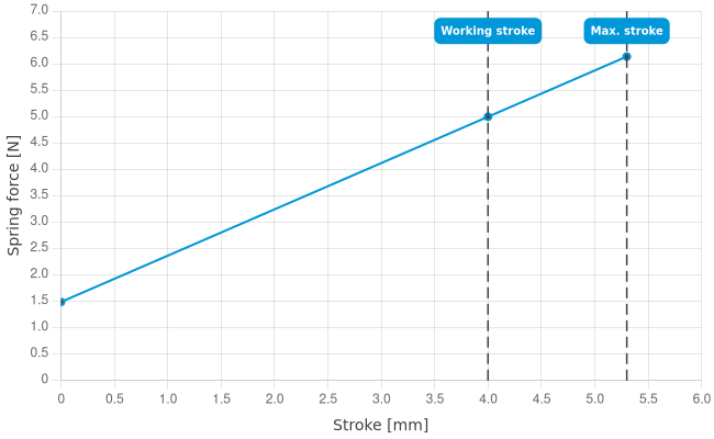 - Spring force at working stroke: 5 N [17.9 ozf]
