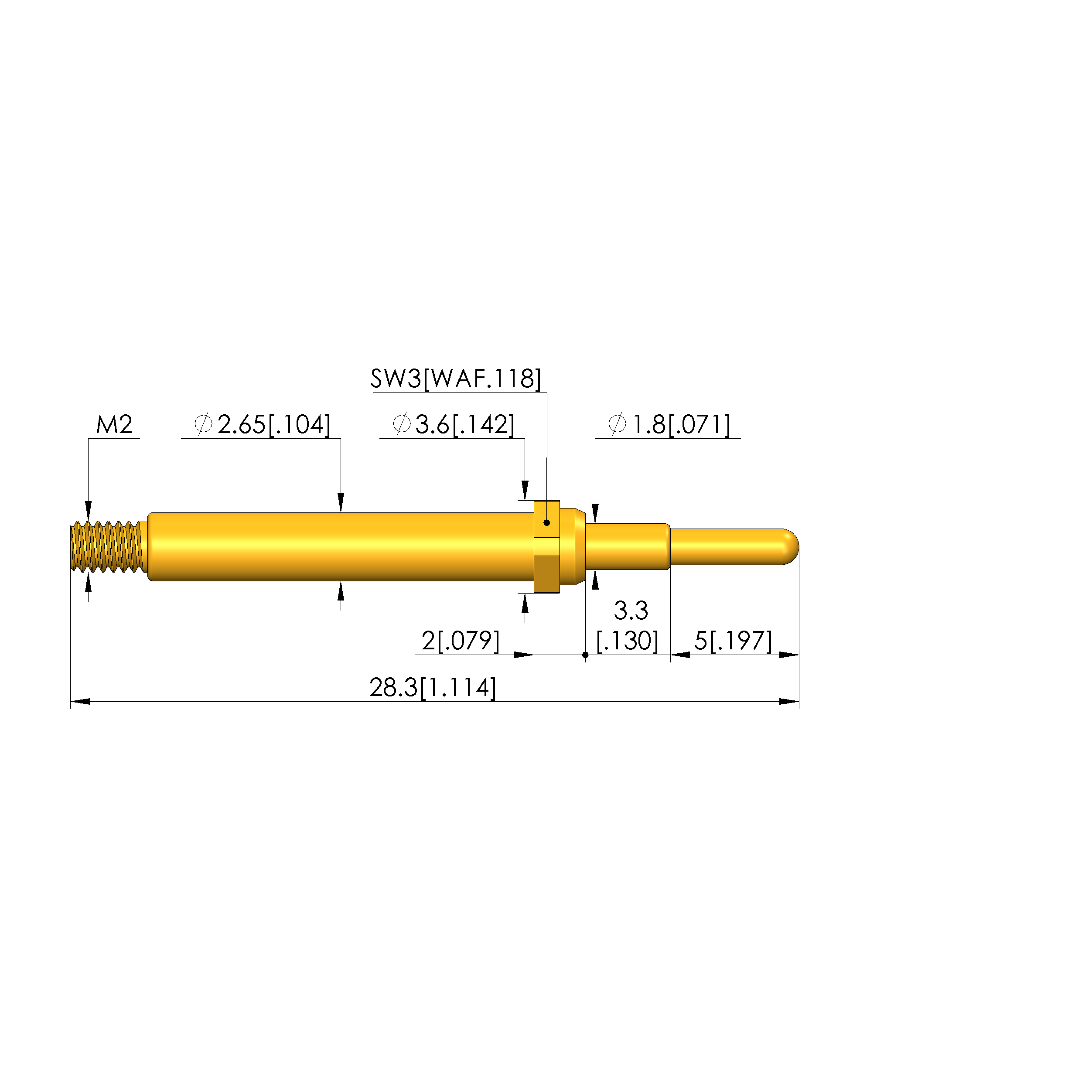 • Barrel diameter: 2.65 mm [.104 in]