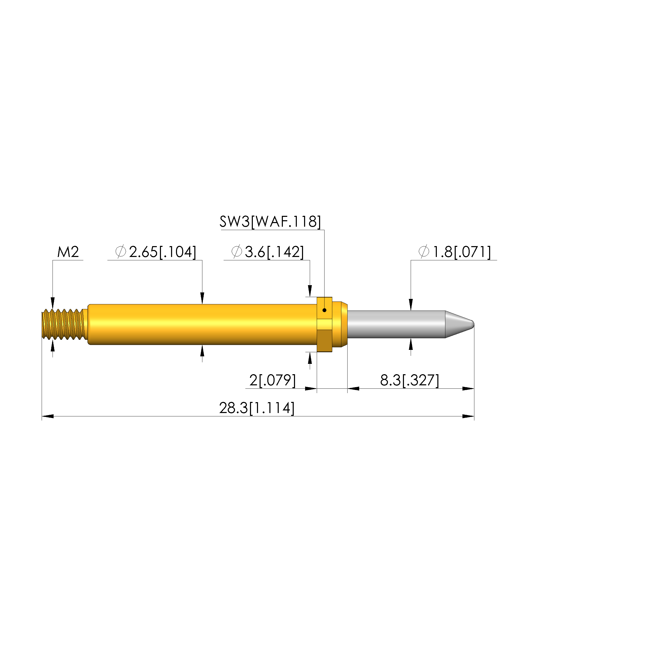 • Spring force at working stroke: 0.6 N [2.15 ozf]