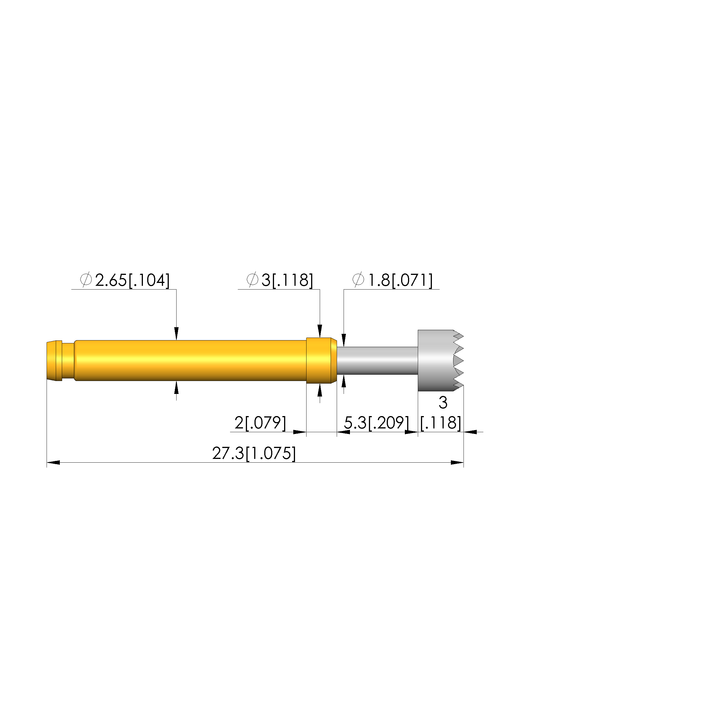 • Barrel diameter: 2.65 mm [.104 in]