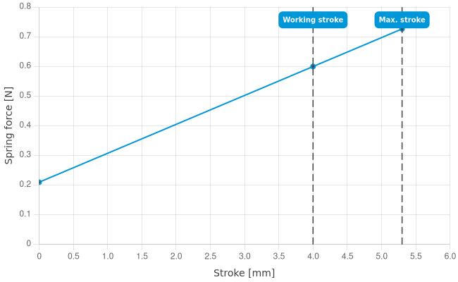 • Spring force at working stroke: 0.6 N [2.15 ozf]