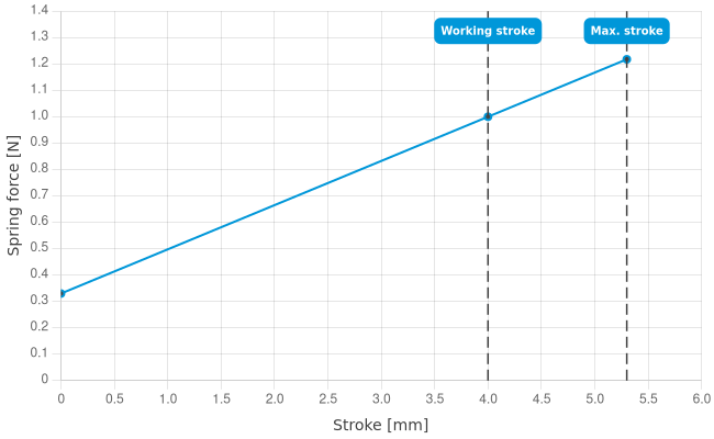 - Spring force at working stroke: 1 N [3.59 ozf]