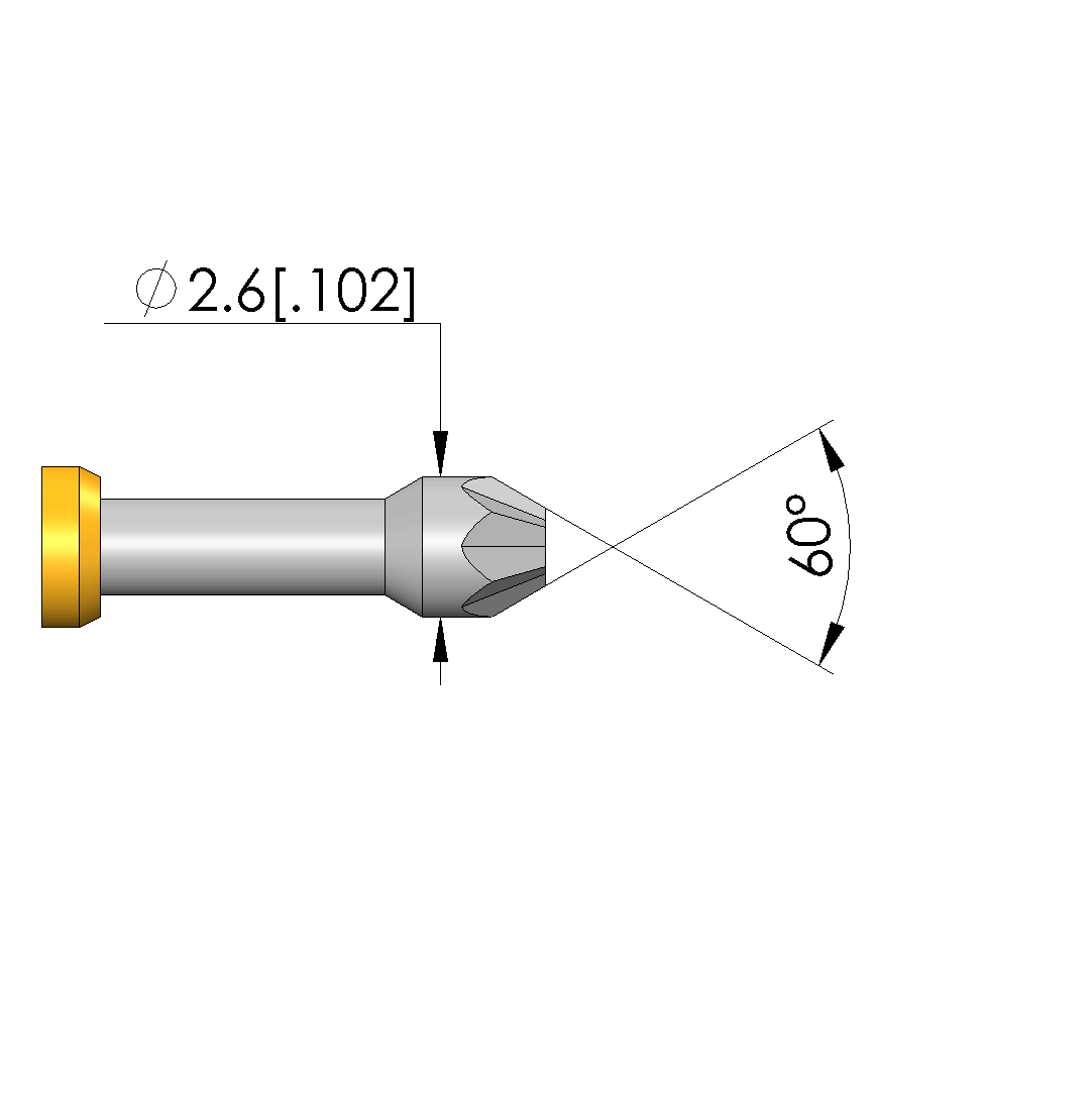 - Tip diameter: 2.6 mm [.102 in]