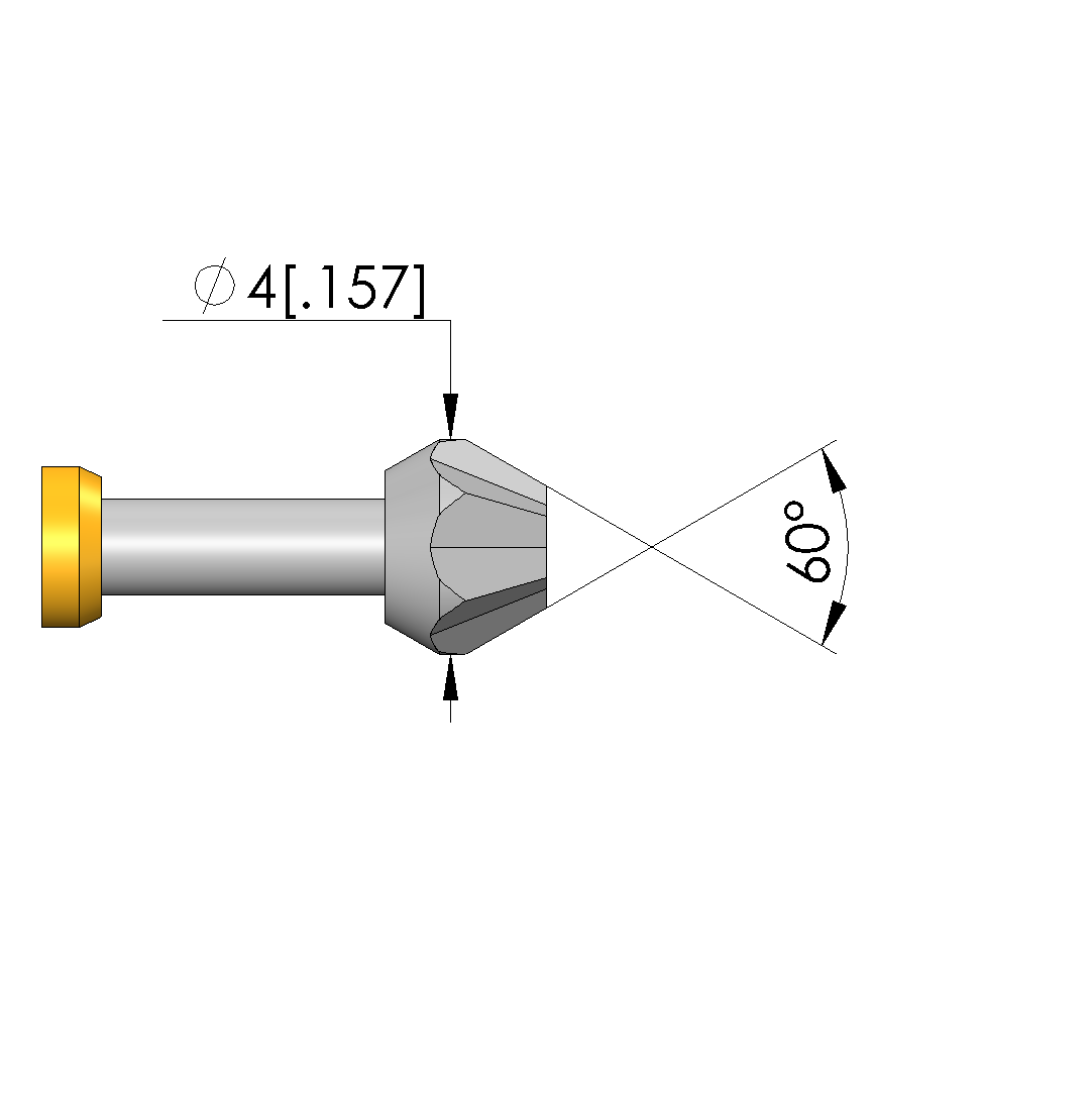 - Tip style: 87 90° hexagonal pyramid with cutting edges, flat head