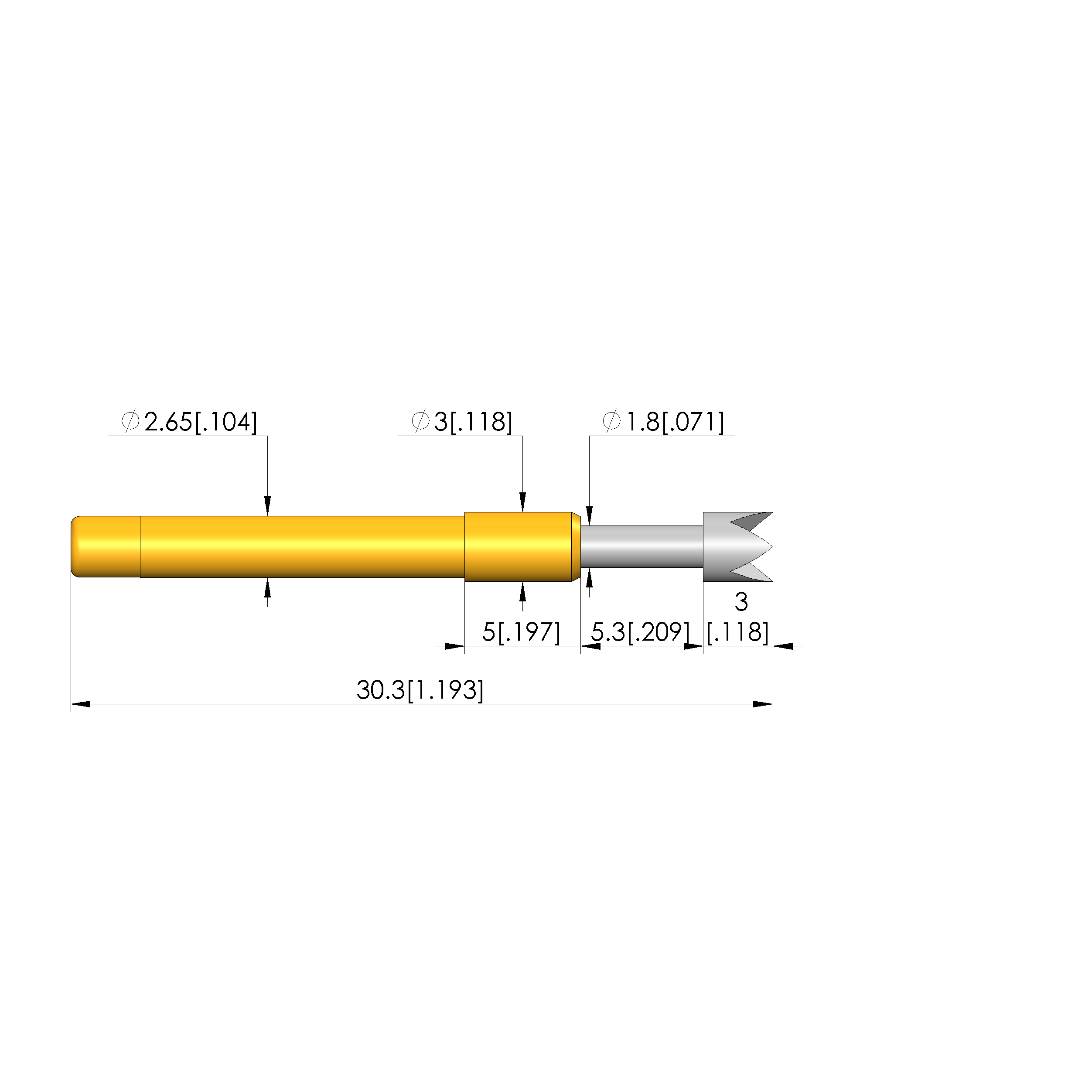 • Barrel diameter: 2.65 mm [.104 in]