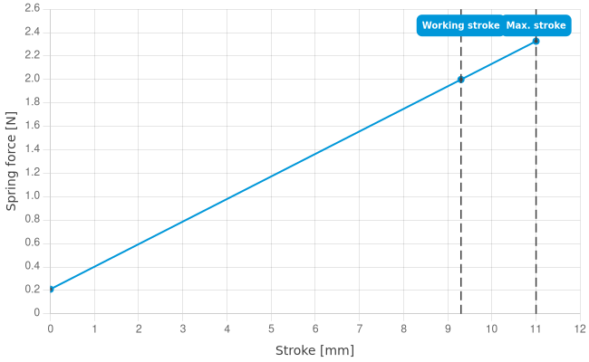 | Spring force at working stroke: | 2 N [7.19 ozf] |
