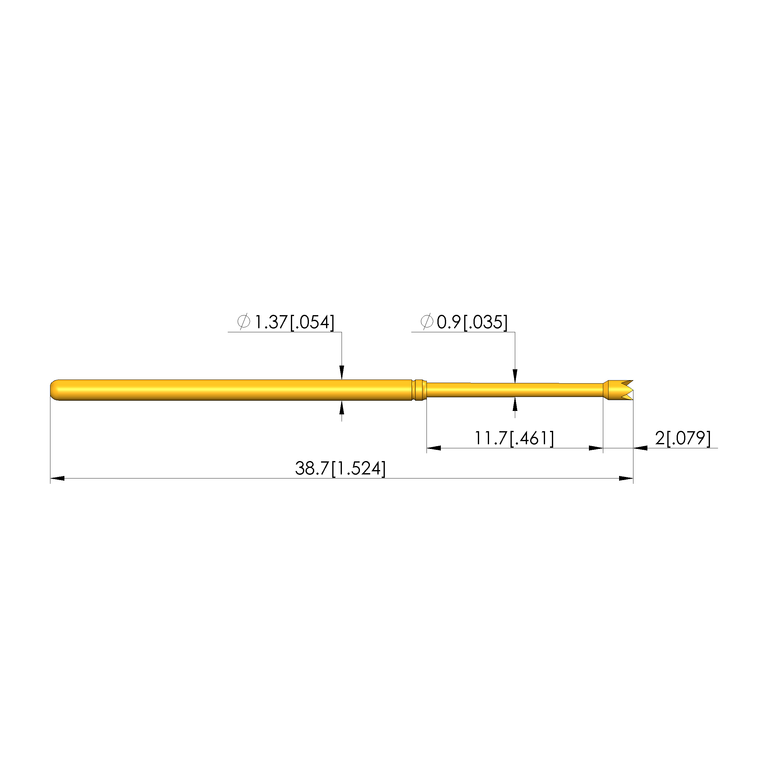 - Barrel diameter: 1.37 mm [.053 in]