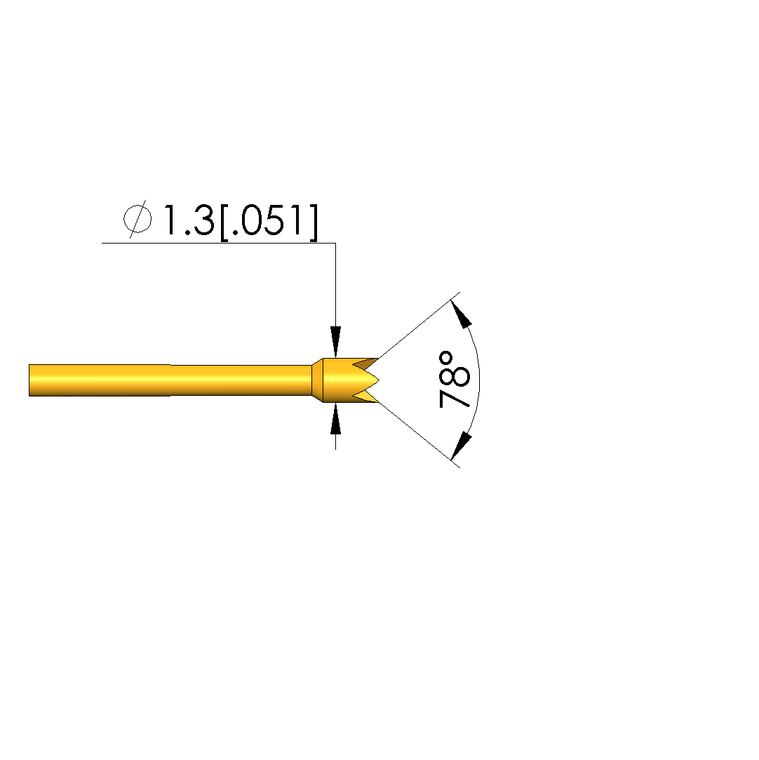 - Tip diameter: 1.3 mm [.051 in]