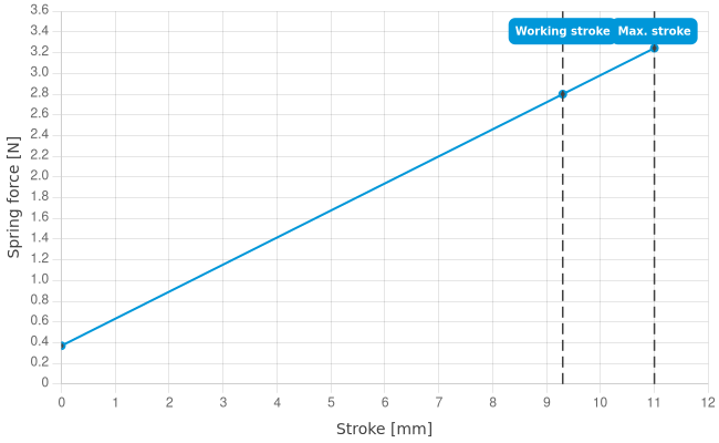 | Spring force at working stroke: | 2.8 N [10 ozf] |