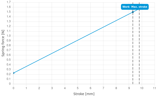 - Spring force at working stroke: 1.5 N [5.39 ozf]