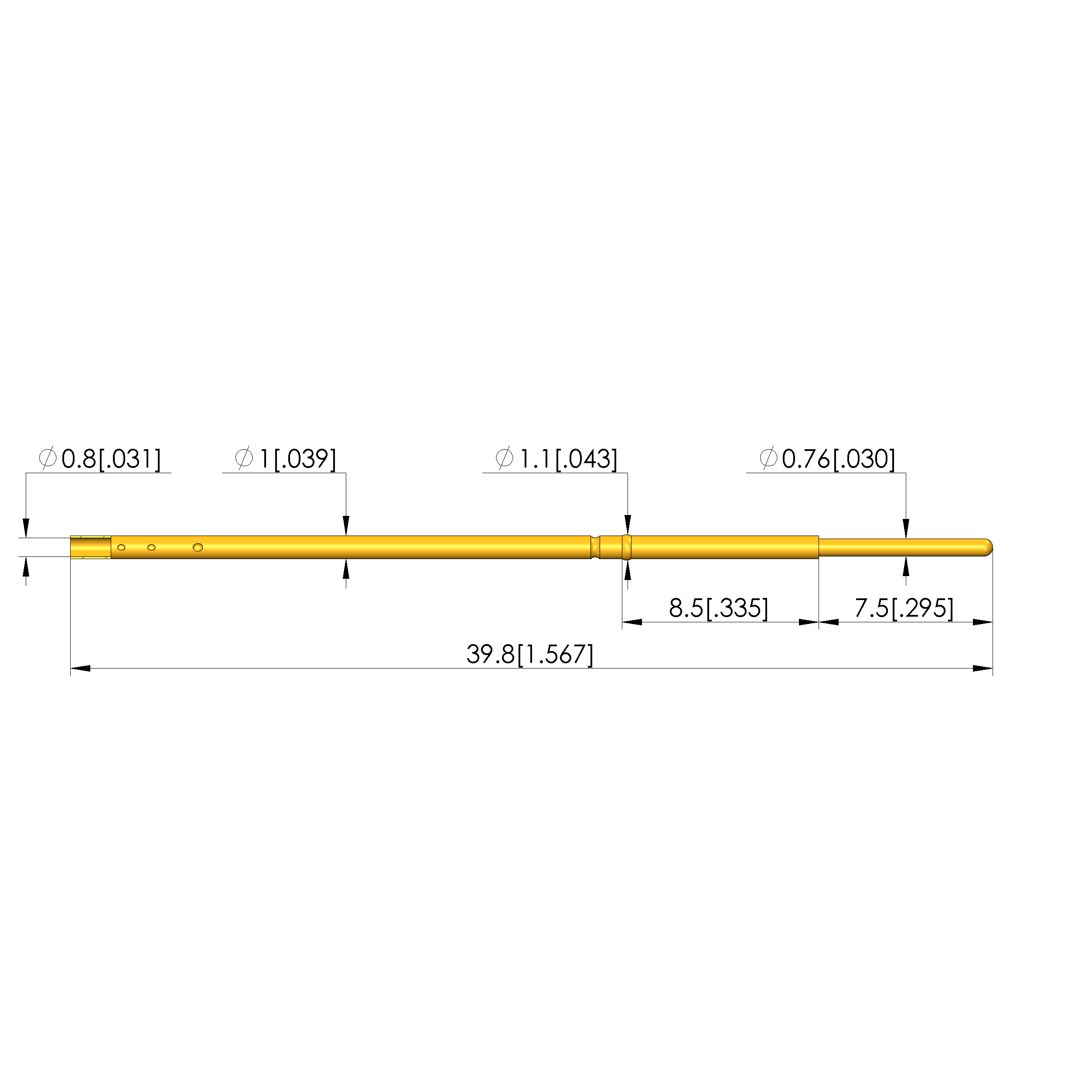 - Tip diameter: 0.8 mm [.031 in]