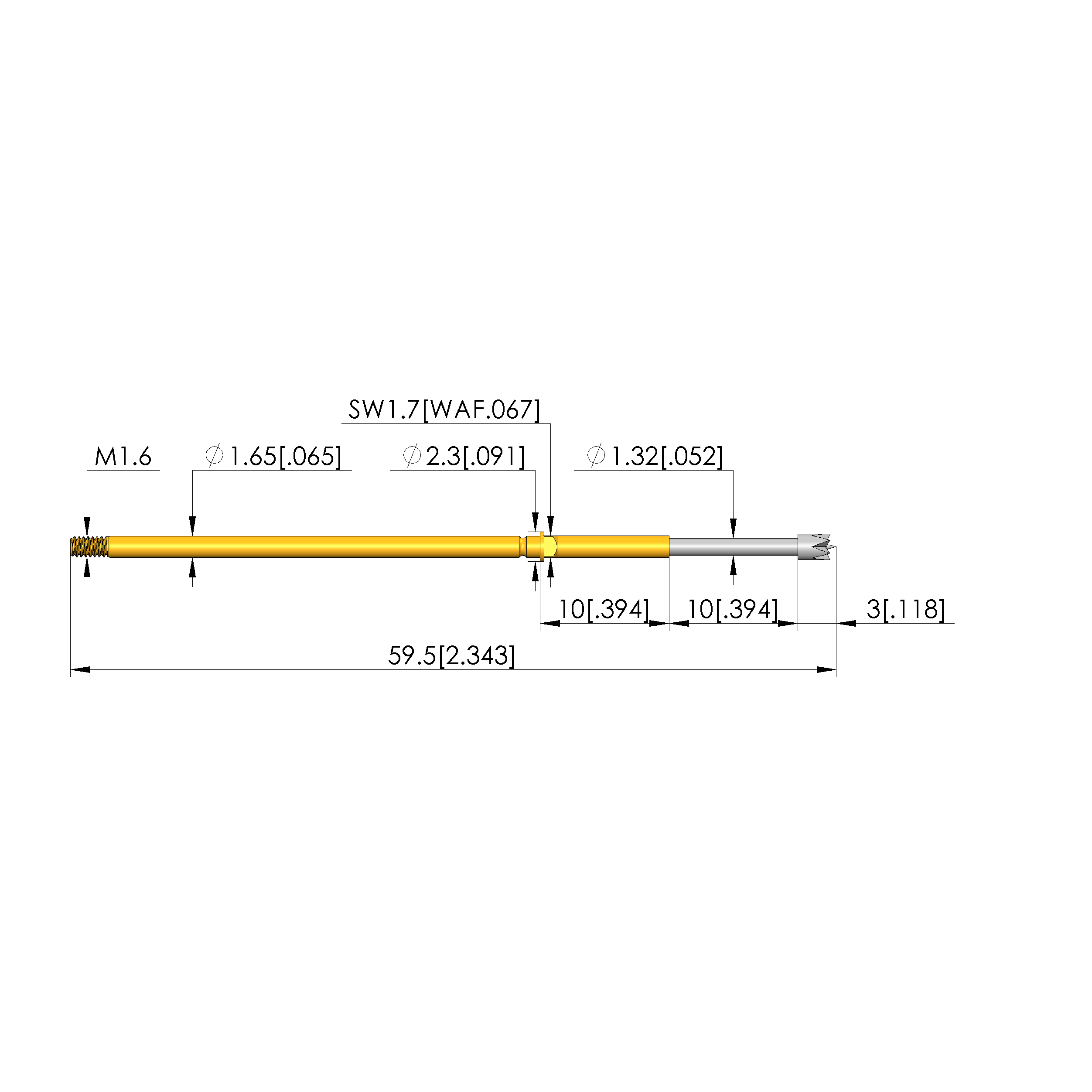 - Barrel diameter: 1.65 mm [.064 in]