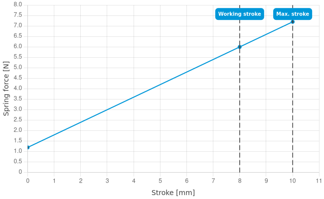 | Spring force at working stroke: | 6 N [21.5 ozf] |