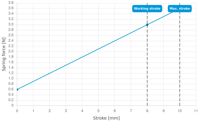 | Spring force at working stroke: | 3 N [10.7 ozf] |
