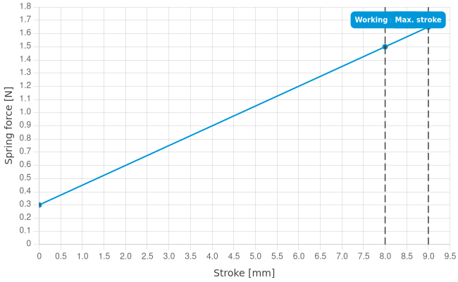 • Spring force at working stroke: 1.5 N [5.39 ozf]