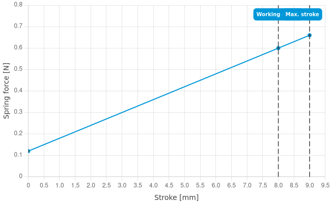 | Spring force at working stroke: | 6 N [21.5 ozf] |