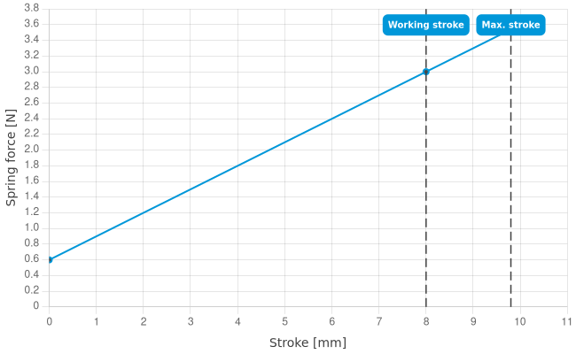 | Spring force at working stroke: | 3 N [10.7 ozf] |