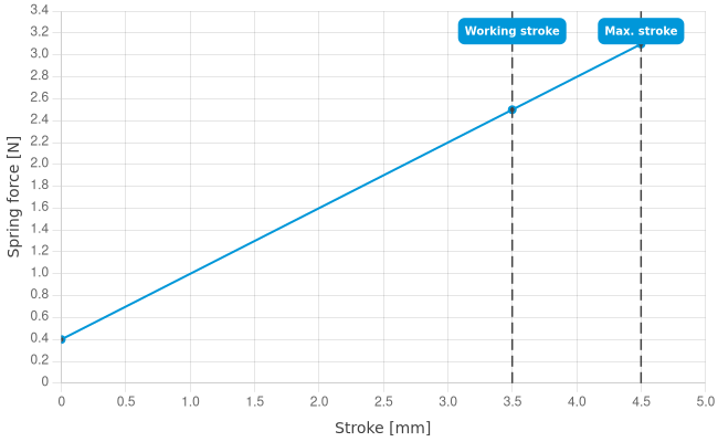 - Spring force at working stroke: 2.5 N [8.99 ozf]