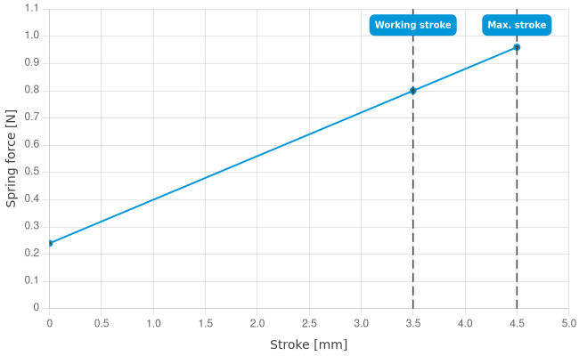 - Spring force at working stroke: 0.8 N [2.87 ozf]