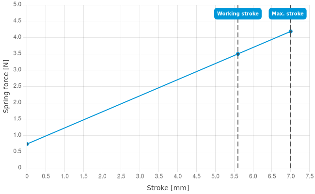 • Spring force at working stroke: 3.5 N [12.5 ozf]