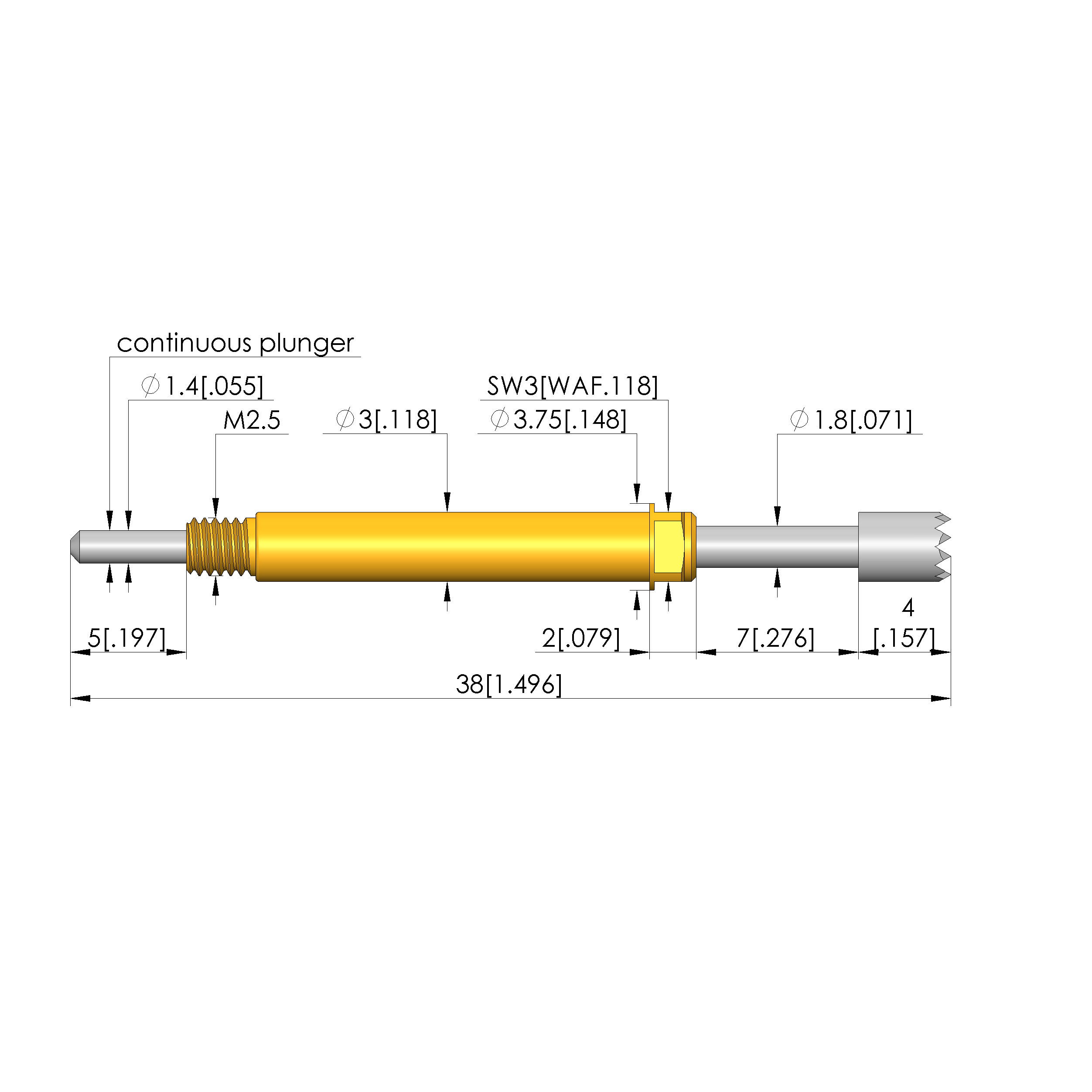 • Barrel diameter: 3 mm [.118 in]