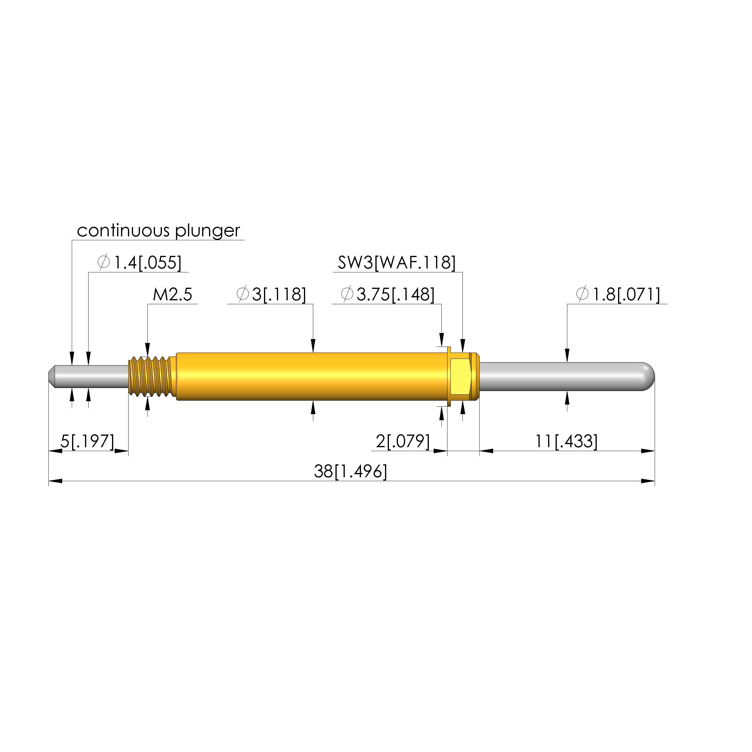 - Barrel diameter: 3 mm [.118 in]