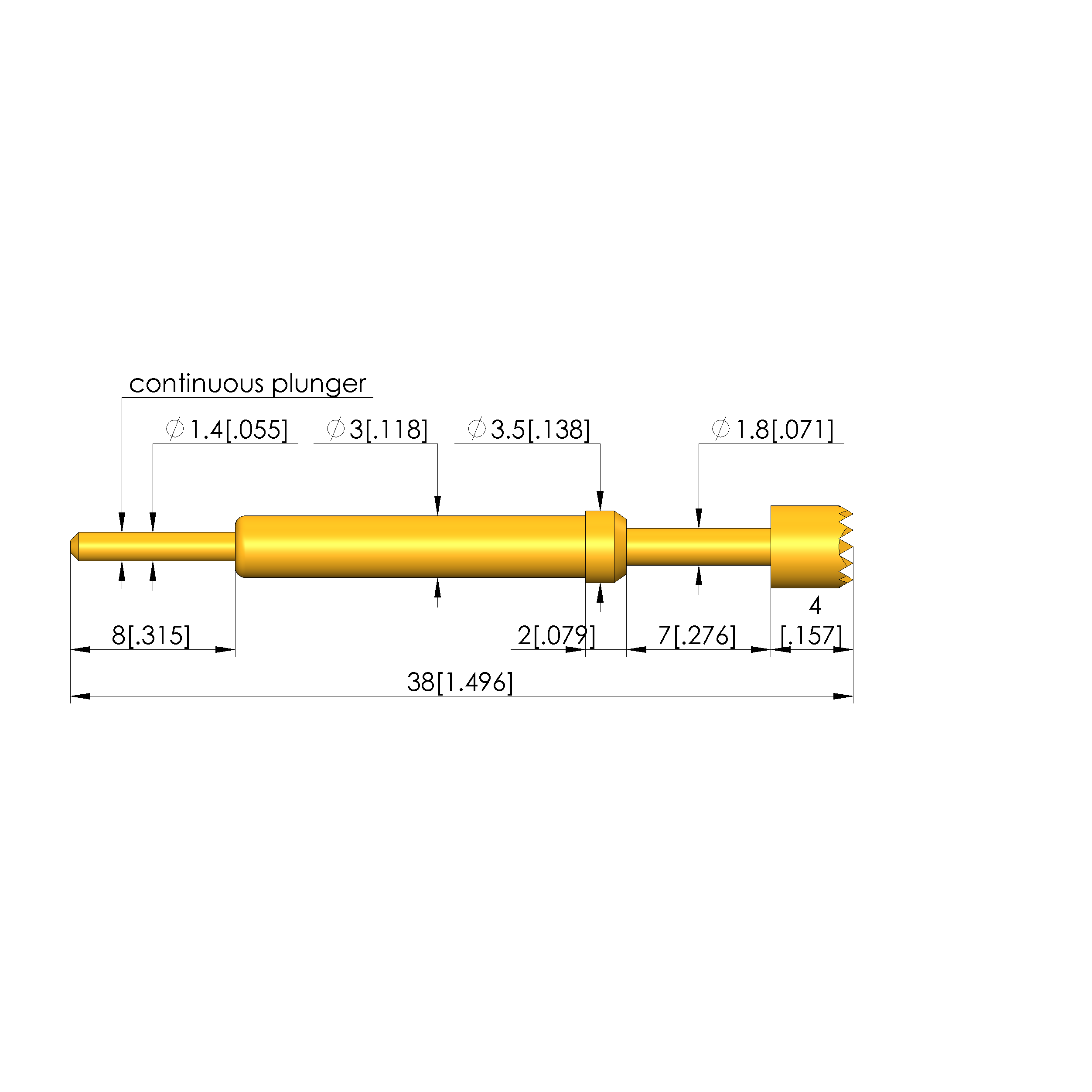 - Continuous plunger: ø1,4 x 8,0