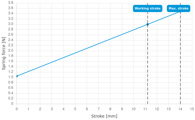 - Spring force at working stroke: 3 N [10.7 ozf]