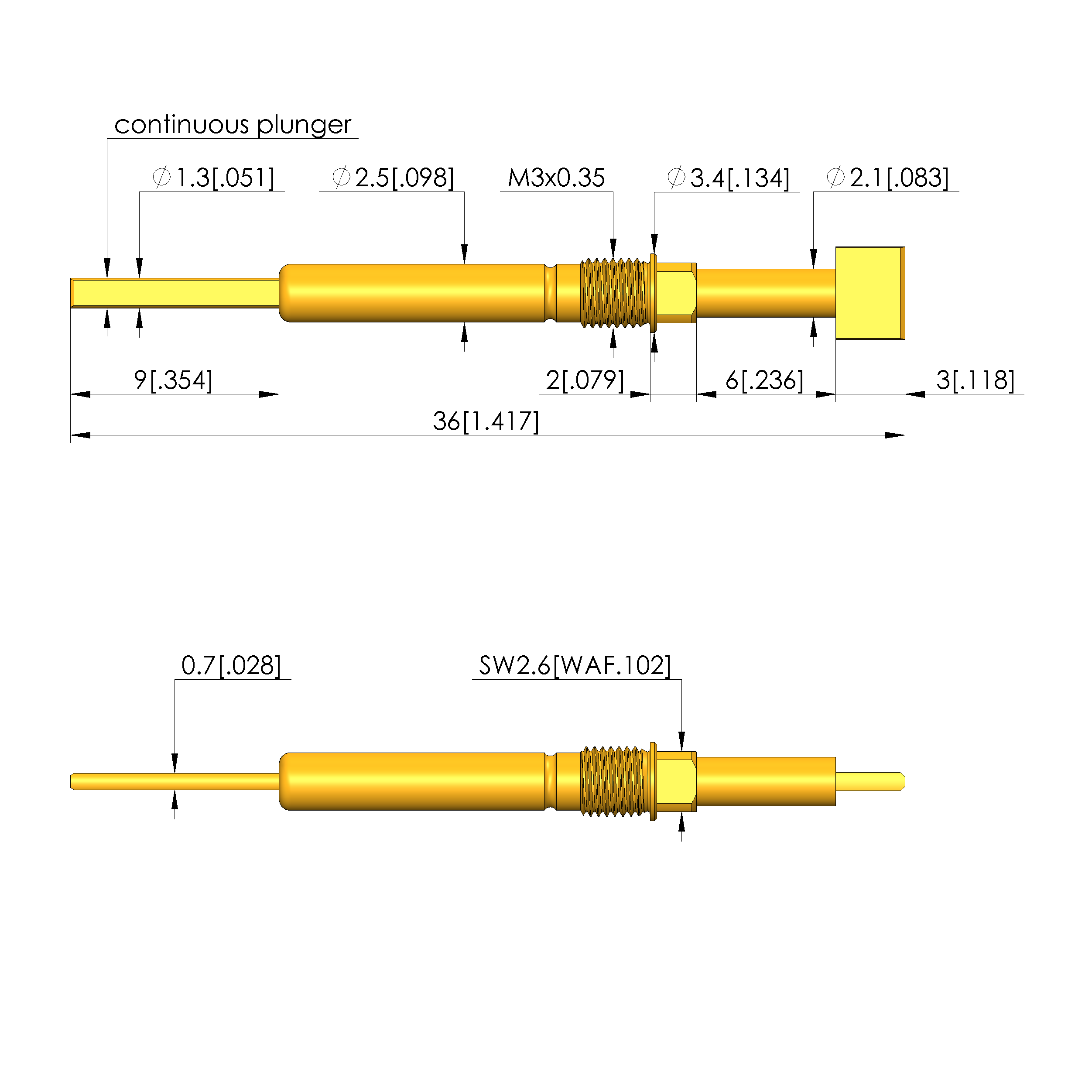 - Continuous plunger: ø1,3 x 0,7 x 9,0