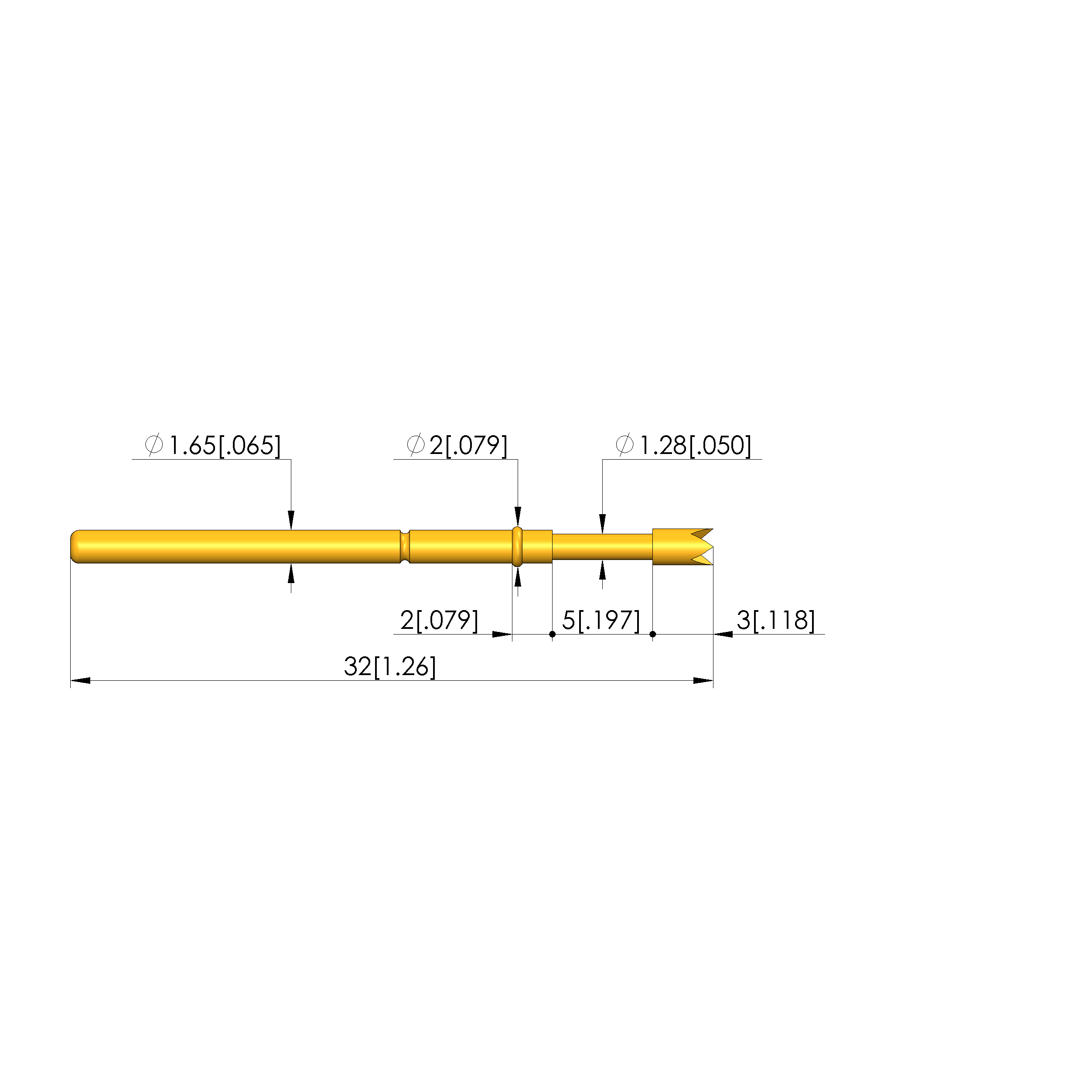 - Total length: 32 mm [1.25 in]