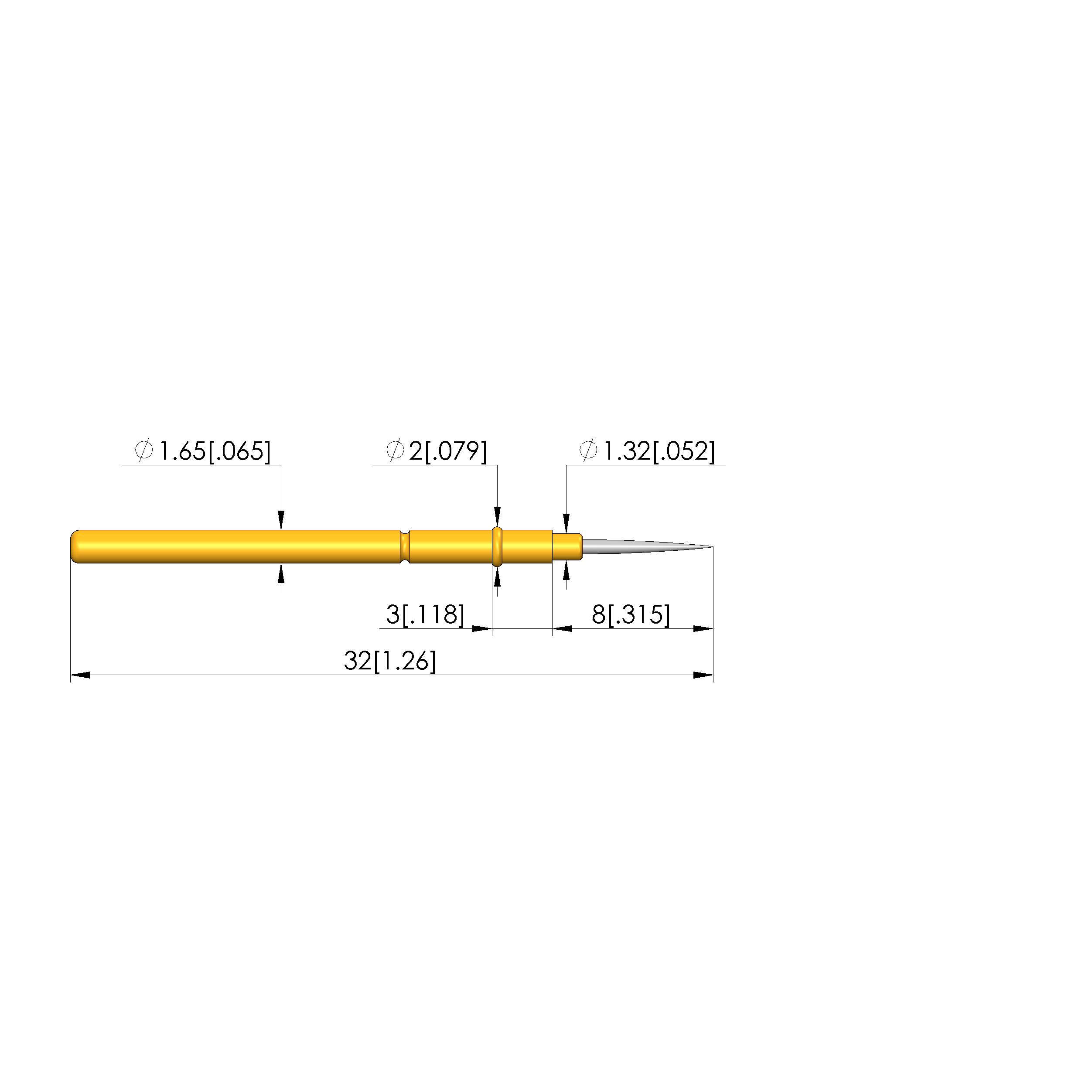 • Barrel diameter: 1.66 mm [.065 in]