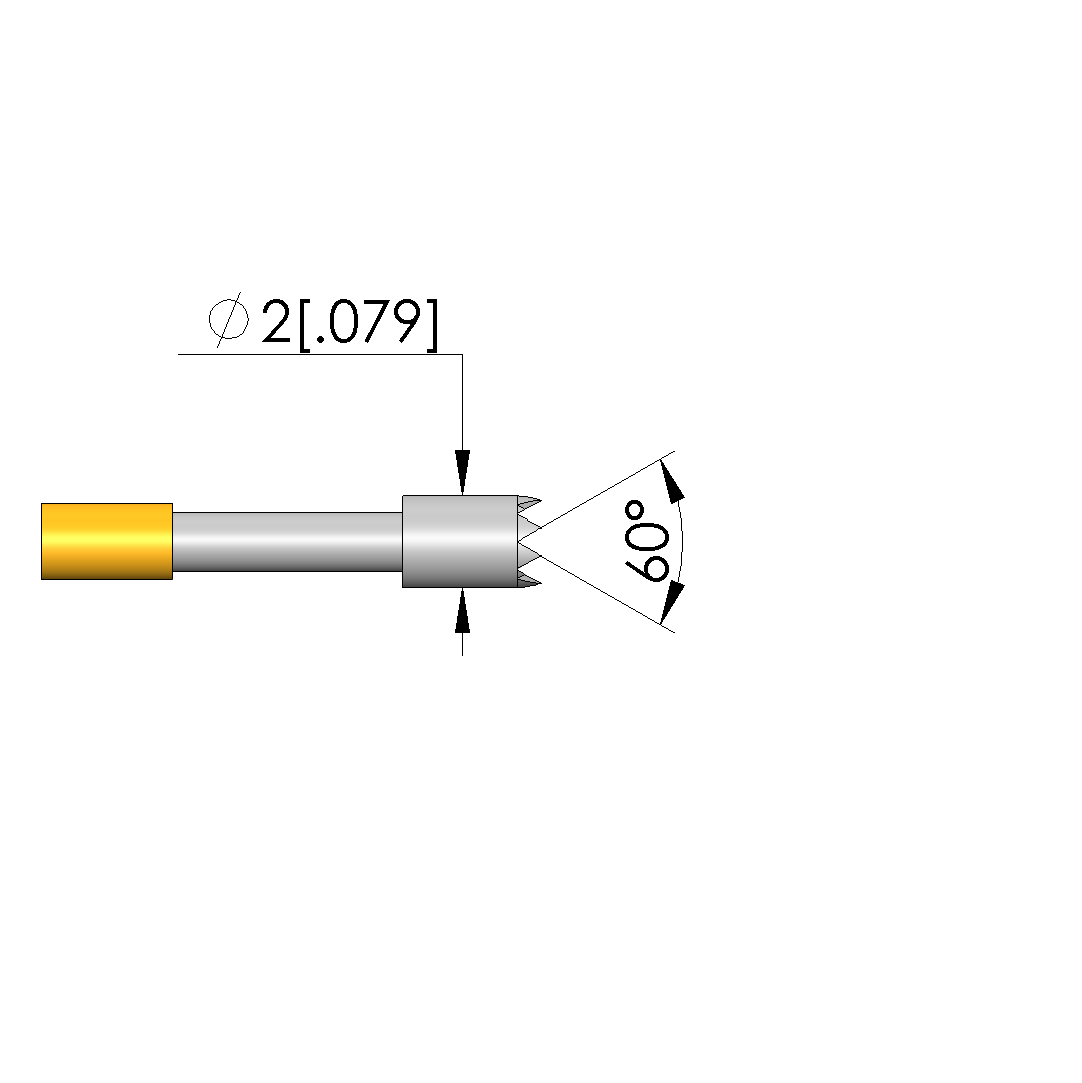 - Tip diameter: 2 mm [.078 in]