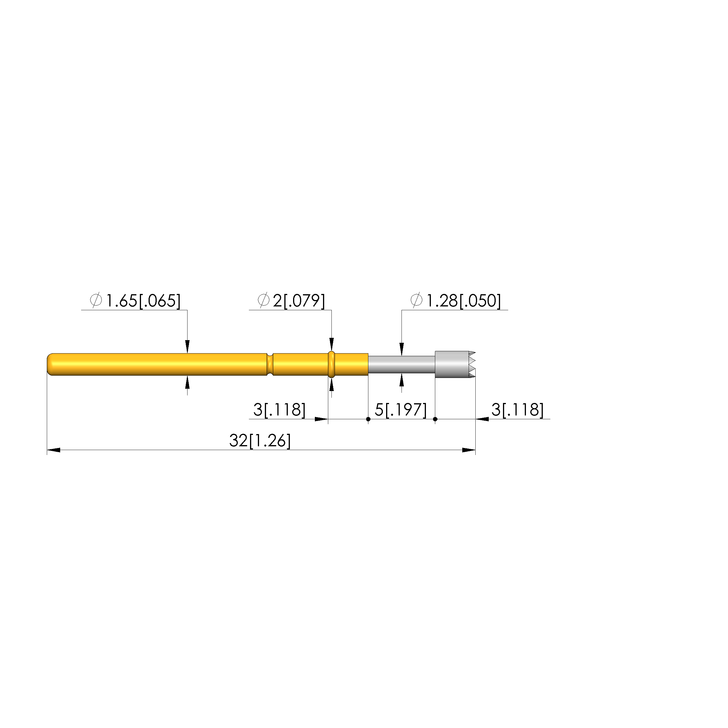 • Total length: 32 mm [1.25 in]