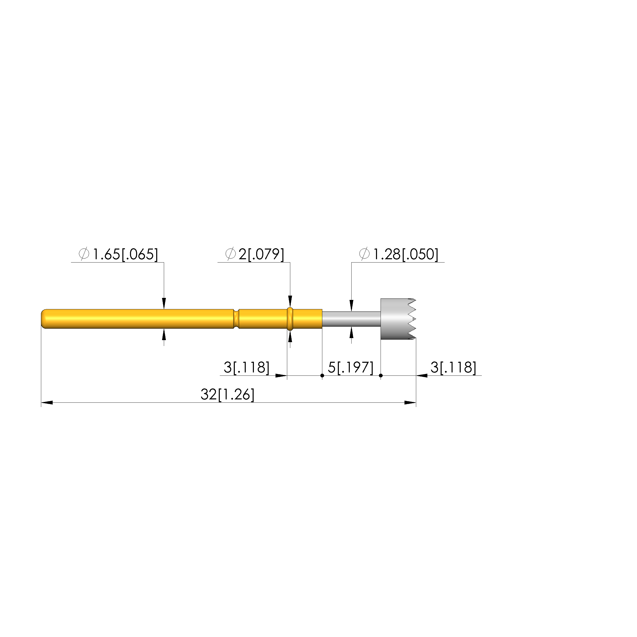 • Total length: 32 mm [1.25 in]