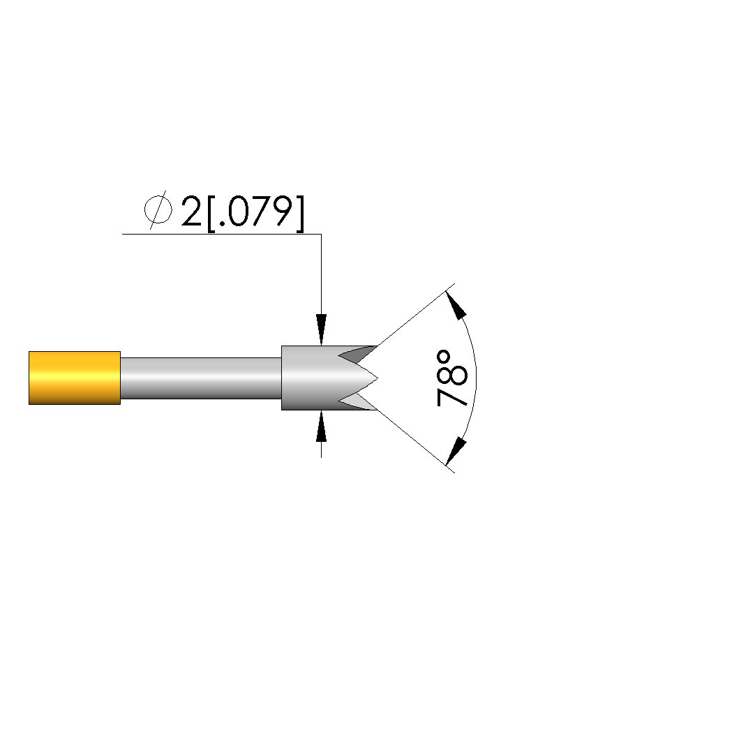 - Tip diameter: 2 mm [.078 in]