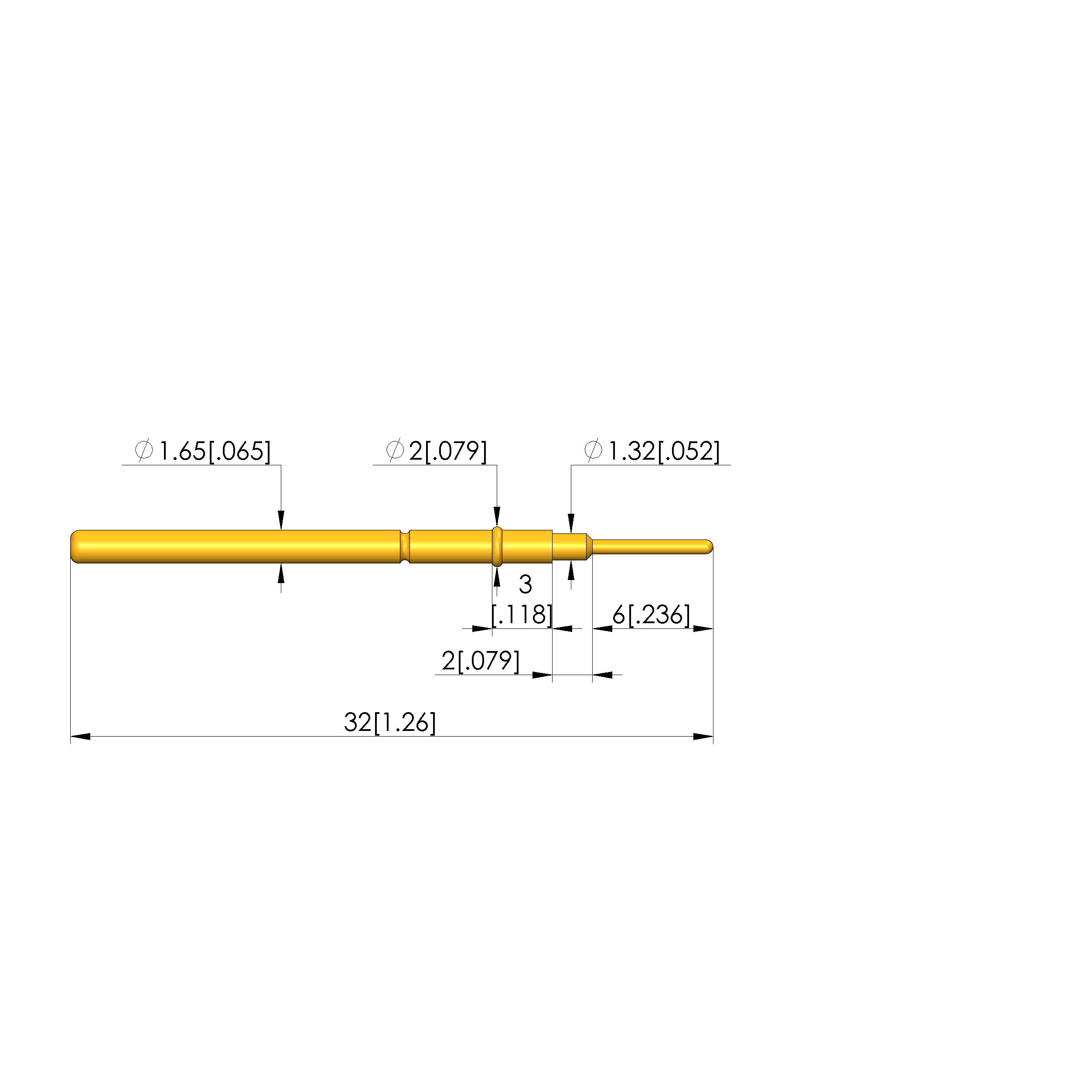 - Barrel diameter: 1.66 mm [.065 in]