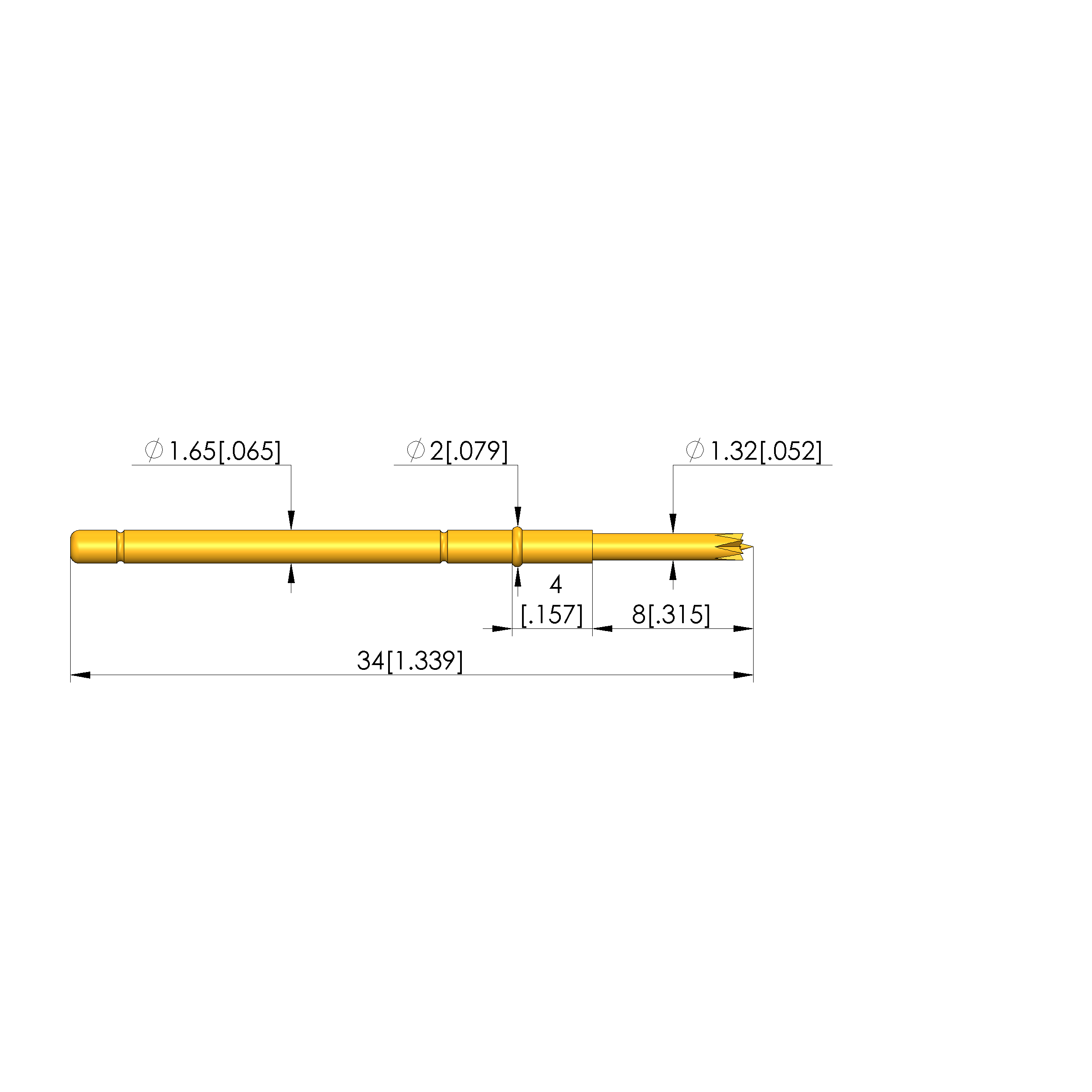 - Barrel diameter: 1.66 mm [.065 in]