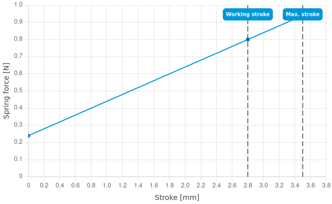 - Spring force at working stroke: 0.8 N [2.87 ozf]
