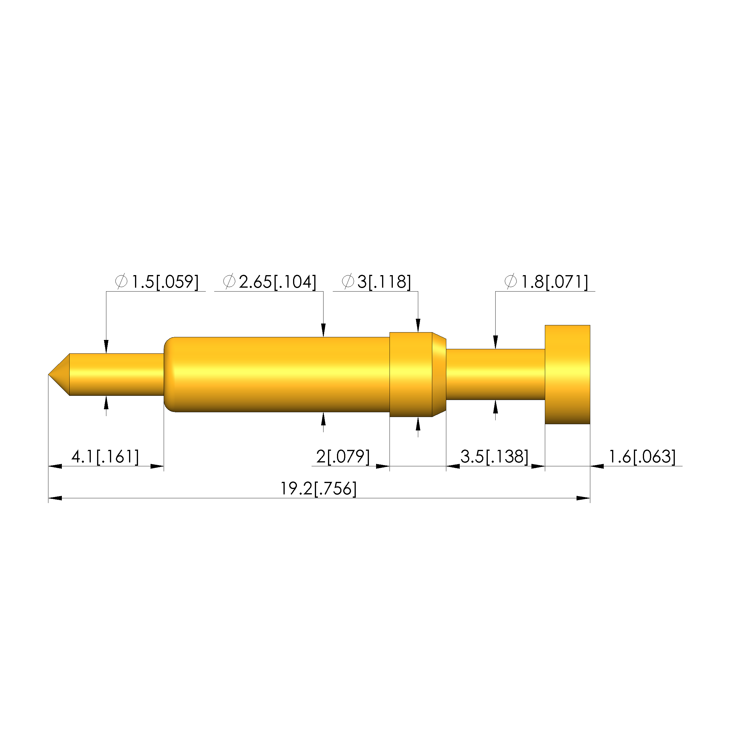 • Spring force at working stroke: 2.5 N [8.99 ozf]