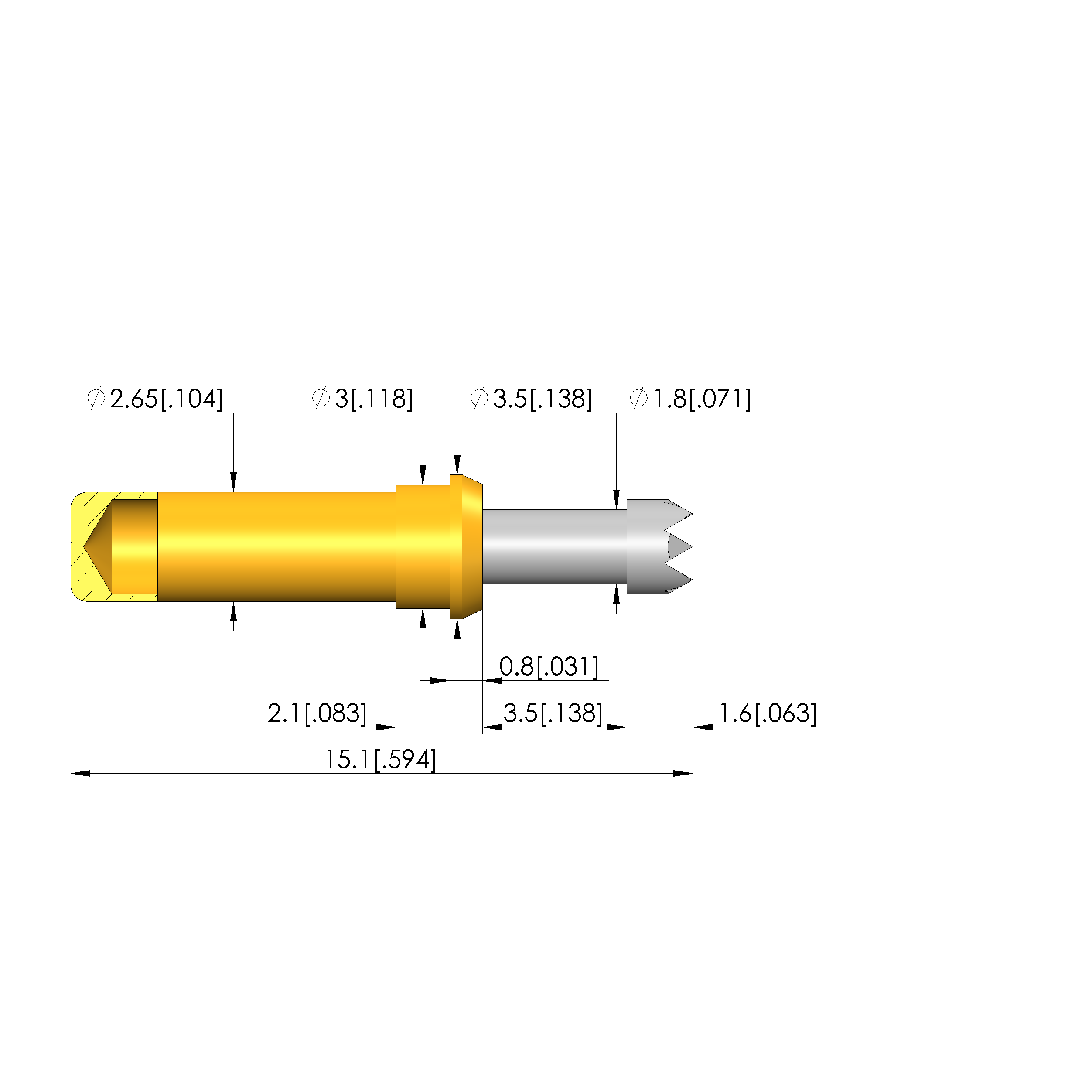 • Spring force at working stroke: 0.8 N [2.87 ozf]