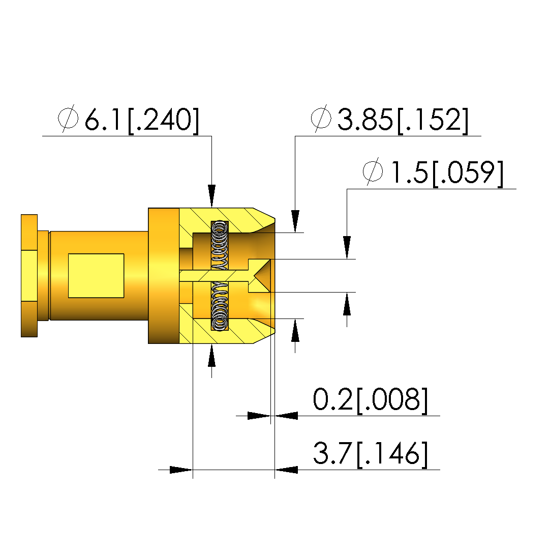 - Spring force of each inner conductor at working stroke: 1 N [3.59 ozf]
